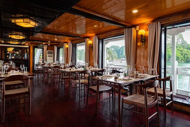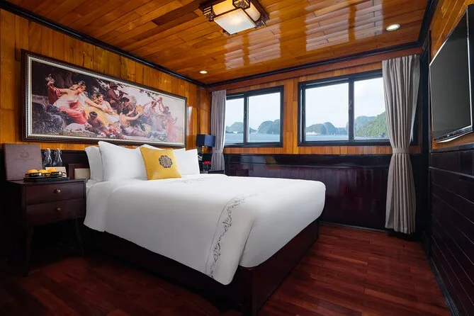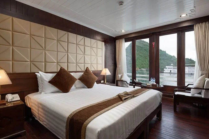 Votre voyage comprend le transfert aller-retour depuis votre hôtel à Hanoi (si réservé), un guide local anglophone pendant les deux jours en baie d’Halong, les entrées à toutes les attractions dont la grotte Surprise et l’île Titop, une expérience en kayak ou en bateau de bambou à la grotte de Luon (au choix), quatre repas vietnamiens traditionnels avec options végétariennes sur demande, un cours de cuisine à bord ainsi qu’une soirée coucher de soleil avec boissons et fruits chaque soir. Vous passerez la nuit dans une cabine deluxe privée avec vue sur la mer à bord d’un bateau 4 étoiles avant de retourner à Hanoi en fin d’après-midi le lendemain.