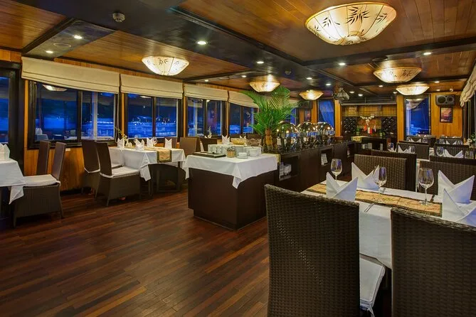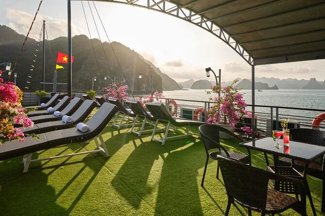 La croisière comprend kayak ou balade en bateau de bambou à la grotte de Luon, baignade à l’île Titop, cours de Tai Chi, cours de cuisine, soirée coucher de soleil, pêche au calamar, karaoké et visite de la grotte Surprise.