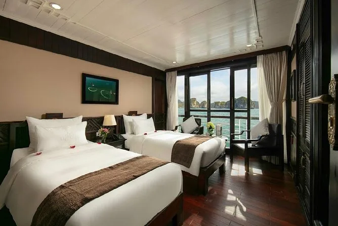 Oui, toutes les cabines offrent une vue privée sur la baie d’Halong.