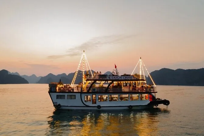 Envie d’une croisière tranquille au coucher du soleil avec une vraie touche locale — kayak sur des eaux calmes, rencontre avec les singes de l’île aux Singes et partage de gourmandises entre voyageurs ? Ce tour est fait pour vous. Tout est organisé depuis Cat Ba, il ne vous reste plus qu’à profiter pleinement de la baie de Lan Ha.