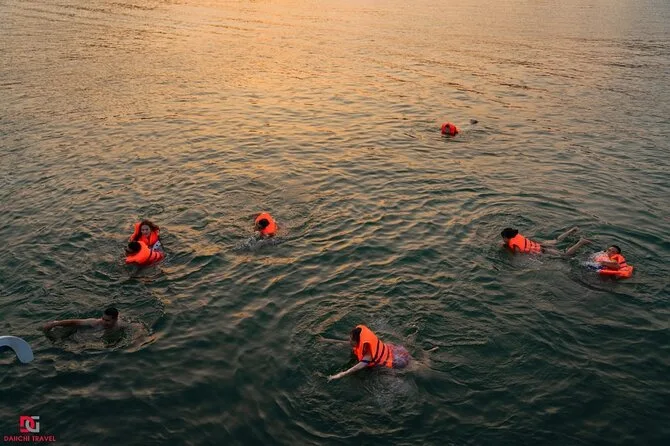 Votre billet comprend tout : entrée dans la baie de Lan Ha, transport aller-retour depuis les hôtels du centre de Cat Ba, tout le matériel de kayak, accès à la baignade (avec serviettes), assurance à bord, ainsi qu’une fête au coucher du soleil avec fruits et pâtisseries. Les guides sont sympathiques et parlent bien anglais — et oui, c’est accessible aux fauteuils roulants.