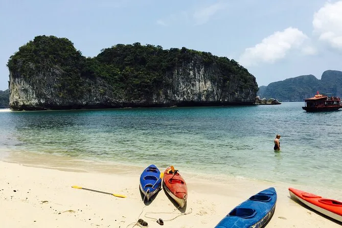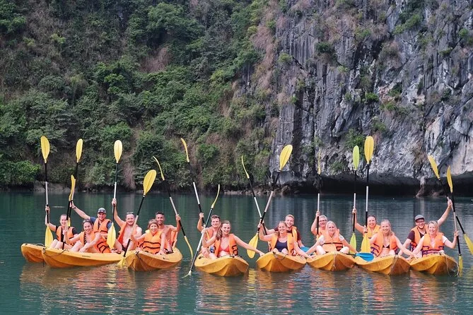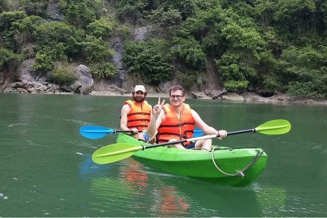 Votre journée comprend le transfert depuis le bureau de Cat Ba avec un court trajet en bus jusqu’à la jetée, tous les frais d’entrée et taxes, le matériel de kayak (avec lampe frontale et sac étanche), l’équipement de snorkeling fourni gratuitement, une grande bouteille d’eau par personne, ainsi qu’un déjeuner à bord avec options fruits de mer ou végétariennes avant le retour en fin d’après-midi.