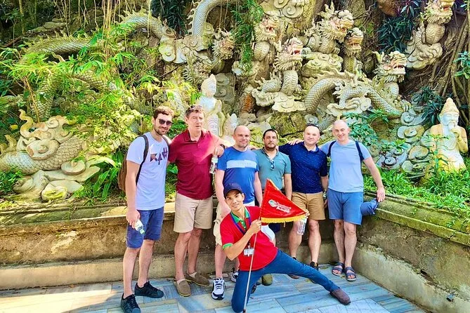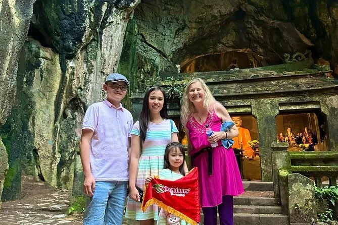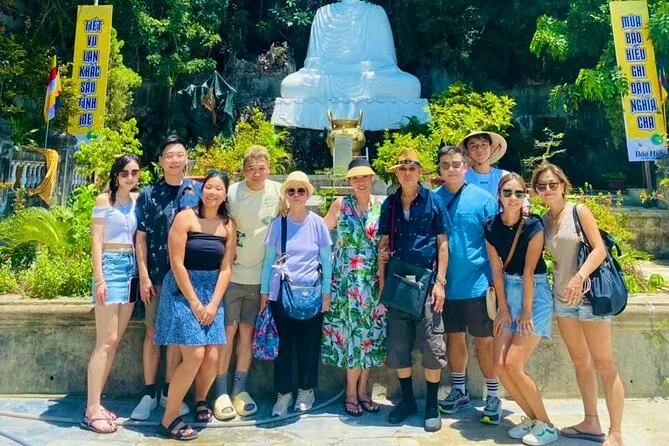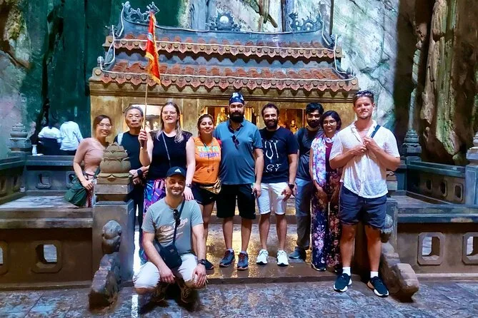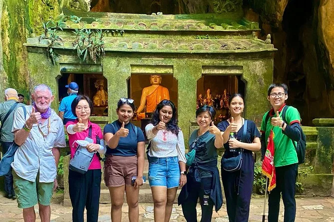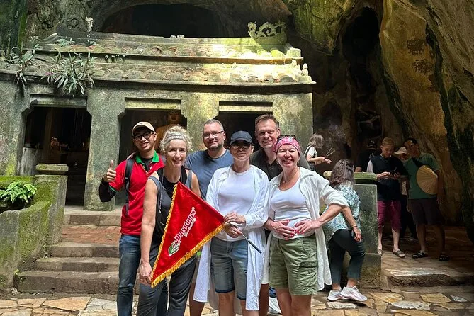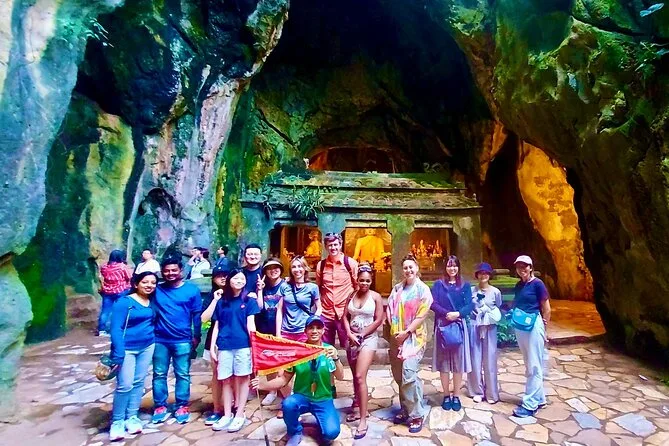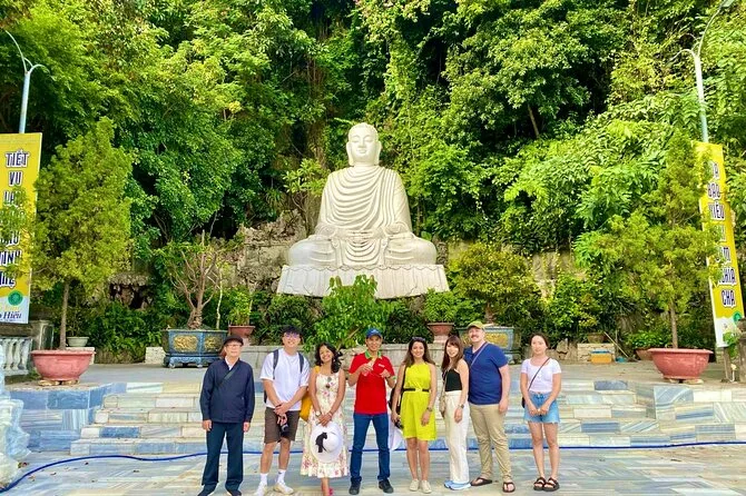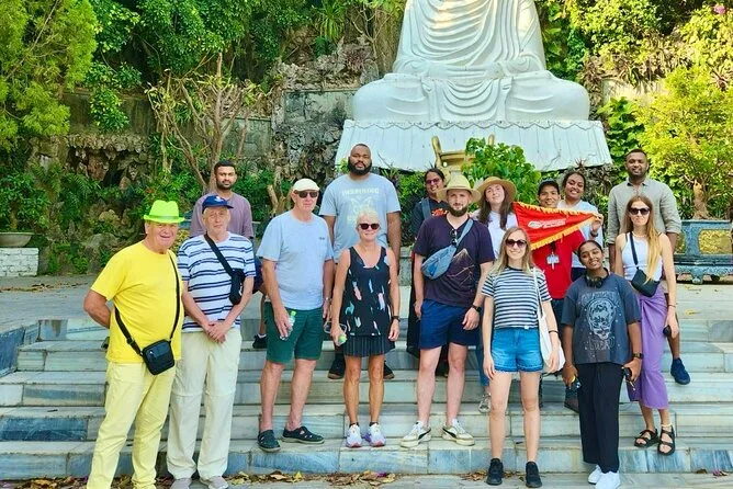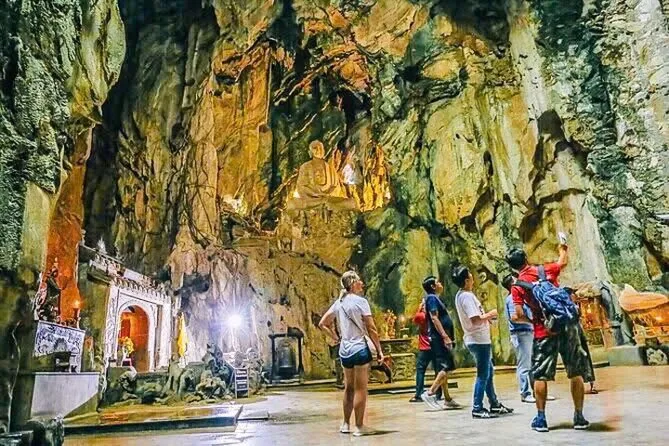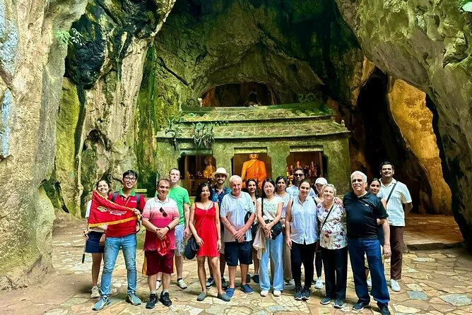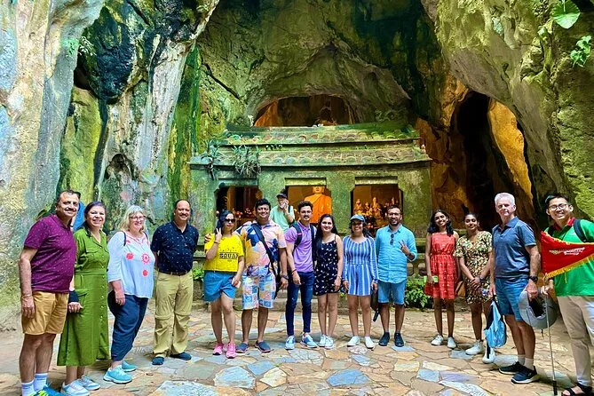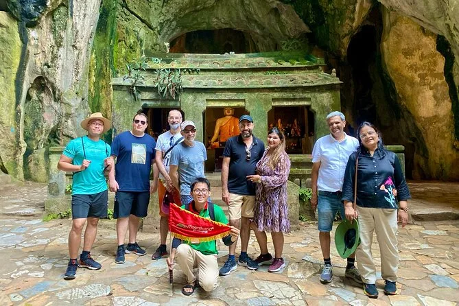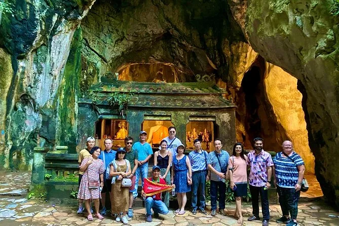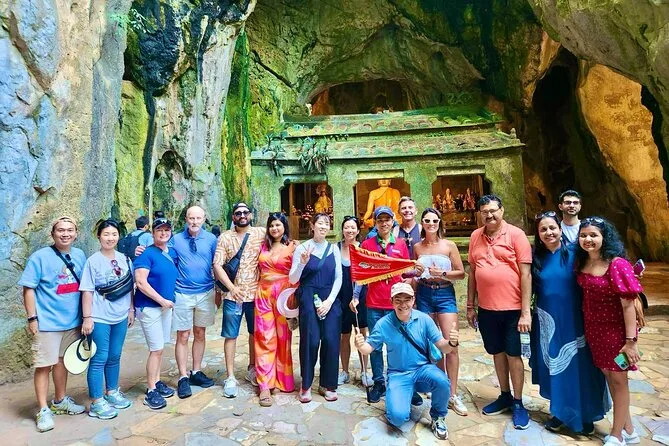 Explorez les Montagnes de Marbre de Da Nang avec un guide local, baladez-vous dans la mystérieuse grotte Am Phu, observez les artisans sculpter le marbre à la main, puis admirez la Dame Bouddha sur la Montagne des Singes avec une vue imprenable sur la ville avant de partager un déjeuner traditionnel — bien plus qu’un simple souvenir en photo.