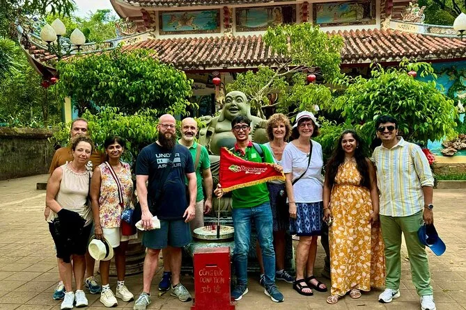 Votre journée comprend la prise en charge et le retour à l’hôtel depuis Hoi An ou le centre de Da Nang, les entrées pour les Montagnes de Marbre (dont la grotte Am Phu) et la pagode Linh Ung sur la Montagne des Singes, de l’eau en bouteille tout au long du trajet, une assurance voyage, ainsi qu’un déjeuner traditionnel vietnamien — nouilles Quang ou bánh xèo — avant de retourner à votre hôtel, détendu et rassasié.
