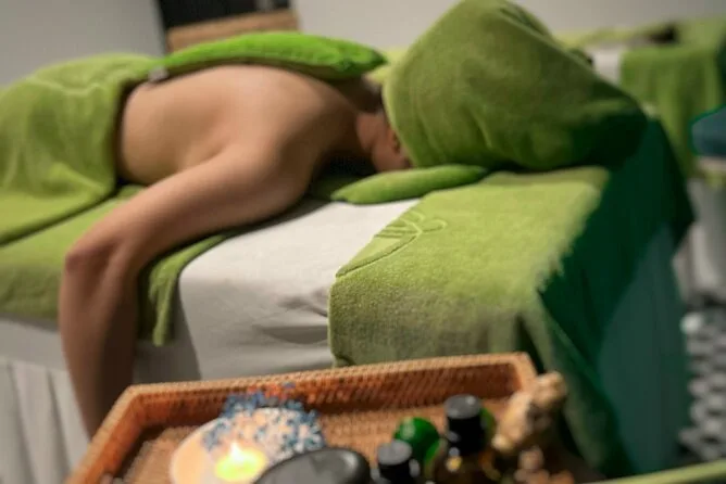 Ma thérapeute, Lan, parlait doucement mais ses mains semblaient expérimentées depuis toujours. Le soin complet a commencé par un massage à l’huile — tiède et non grasse — puis elle a posé des pierres chaudes enveloppées dans des serviettes sur mon dos. J’ai d’abord eu peur qu’elles brûlent (j’ai sursauté), mais la chaleur s’est installée doucement. Pendant que les pierres reposaient là, Lan s’occupait de mes pieds avec de l’huile et un autre jeu de pierres. Je ne suis pas du genre chatouilleux, mais j’ai failli éclater de rire quand elle a touché un point près de ma cheville. Elle a souri sans rien dire — ça doit arriver souvent.
