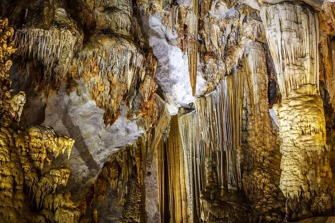 Votre journée comprend la prise en charge à l’hôtel à Dong Hoi ou dans le village de Phong Nha, tous les billets d’entrée pour les deux grottes, de l’eau en bouteille tout au long du trajet, une balade en buggy électrique à travers la jungle jusqu’à l’entrée de la Grotte Paradis, des visites guidées dans les deux grottes (environ 1 km dans Paradis et 300 m dans Phong Nha), un déjeuner vietnamien traditionnel avec options végétariennes si besoin, ainsi qu’une croisière en bateau dragon sur la rivière Son avant le retour à votre hôtel ou votre prochaine destination.