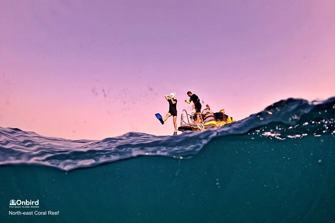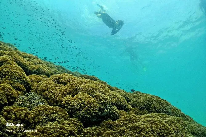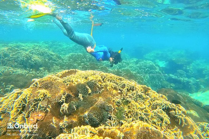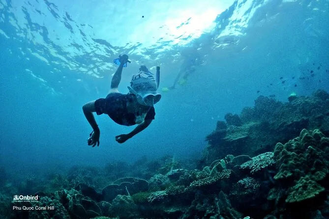 Votre journée comprend la prise en charge à l’hôtel dans les zones centrales de Phu Quoc (centre de Duong Dong, Bai Truong et An Thoi), tout l’équipement de snorkeling stérilisé et de qualité — masque anti-buée, tuba semi-étanche pour la plongée libre si vous le souhaitez, palmes réglables et dispositifs de flottaison — ainsi que de l’eau fraîche à bord. Un instructeur professionnel anglophone vous guide à travers deux spots coralliens cachés, avec fruits frais et jus à la fin avant le retour à votre hôtel.