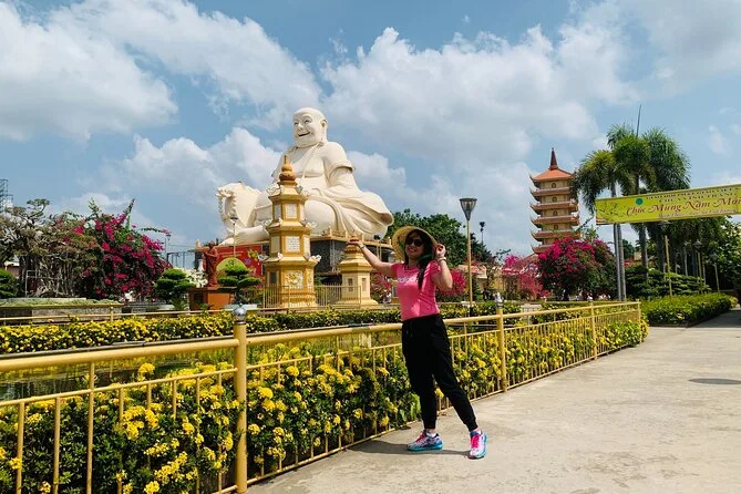 Vous explorerez les tunnels historiques de Cu Chi avec un guide local, naviguerez en sampan sur les bras calmes du Mékong, goûterez un thé au miel à la ferme au bord de l’eau, et partagerez un déjeuner avec crevettes fraîches et poisson croustillant. Rires, saveurs inédites et souvenirs qui restent longtemps.