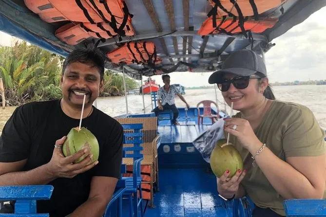 Vous ferez une balade en bateau motorisé, pagayerez en sampan dans des canaux ombragés, et visiterez des ateliers de dégustation de thé au miel et de bonbons à la noix de coco.