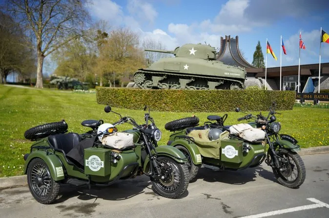 Vintage sidecar ride through Normandy’s D-Day history with local stories and iconic sites