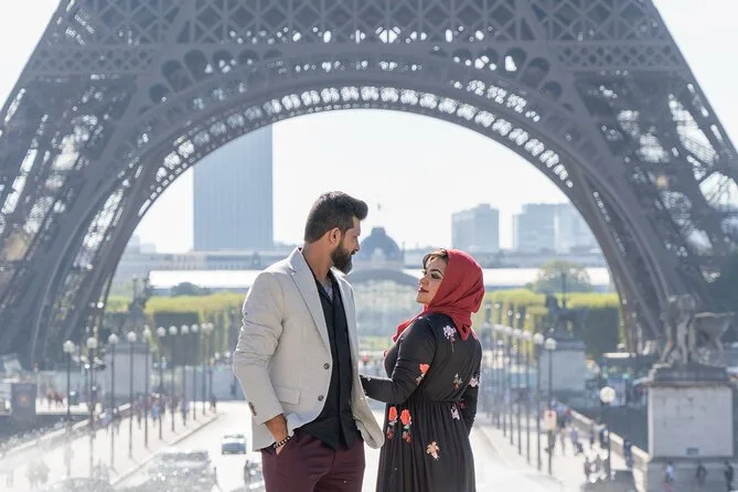 Your experience includes a professional Paris photographer guiding you through three distinct Eiffel Tower viewpoints with gentle posing tips; previews sent within 24 hours and 15 retouched photos delivered after your selection; options for props if arranged ahead; suitable for families or solo travelers; fully wheelchair accessible throughout.