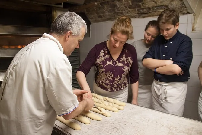 Your morning includes a hands-on cooking class inside a working Paris bakery led by an expert baker, all ingredients provided, full recipes to take home with you, plus generous tastings of fresh-baked baguettes and buttery croissants before you leave.