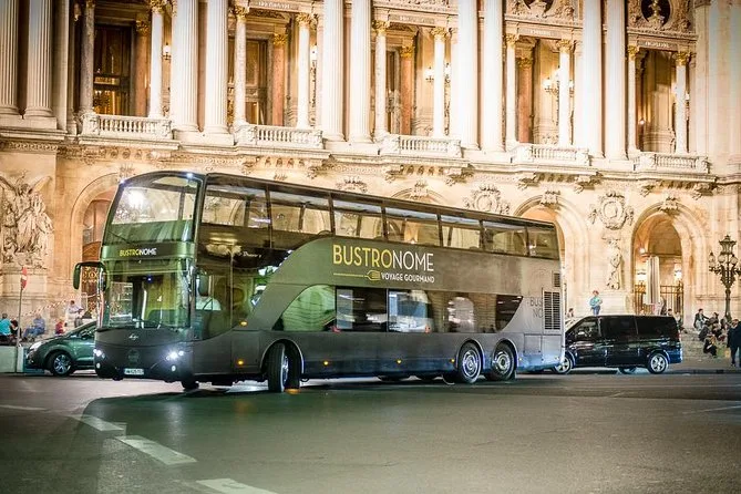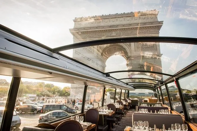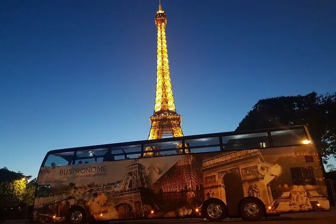 You’ll settle into your seat on a glass-roofed bus as Paris glides by — Eiffel Tower sparkling outside, six courses arriving one by one. You’ll pause beneath city lights for photos, hear local stories from your guide, and taste classic French dishes while watching Notre Dame drift past your window. The feeling stays with you long after dessert.