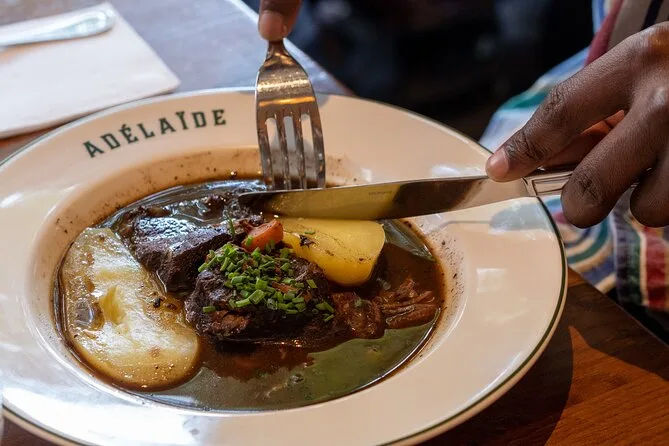 Your day includes all tastings—a full French meal with appetizers, main course (like boeuf bourguignon), assorted cheeses, pastries and crepes—as well as water throughout. Lunch and dinner are covered as part of your walking journey through Montmartre’s most flavorful corners.