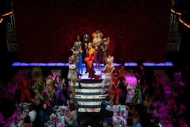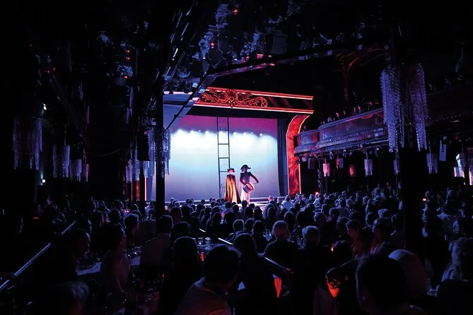 Your evening includes entry to Paradis Latin in central Paris with reserved seating for the cabaret show, a three-course dinner crafted daily by Guy Savoy’s team, half a bottle of wine plus champagne per person, mineral water throughout your meal, and friendly table service from arrival until late evening.