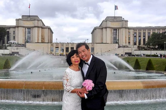 Your day includes a bespoke vow renewal ceremony led by a celebrant at your chosen central Paris location near the Eiffel Tower or Bois de Boulogne, with a professional photographer capturing every moment along your walk among famous landmarks. You’ll receive between 130-150 high-definition photos by email after your event (and professional video if selected), plus space for up to eight guests to share it with you.