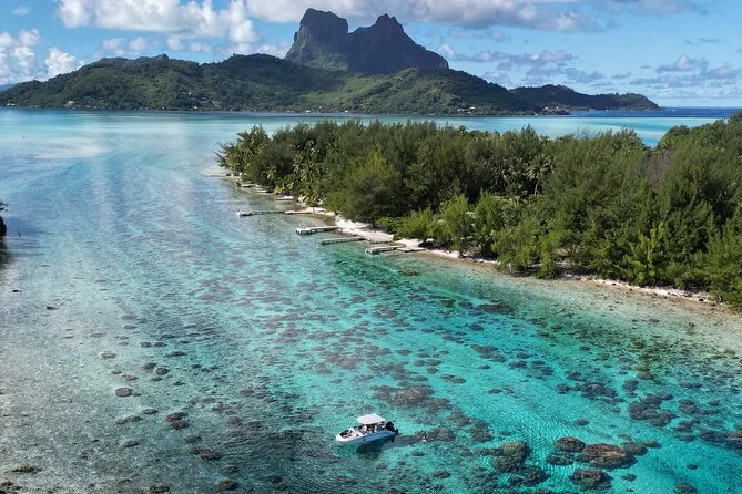 Your half-day includes hotel pickup and drop-off around Bora Bora, all snorkeling equipment (fins too), beach towels to dry off after each swim, cold bottled water and sodas onboard, plus a local guide who leads every snorkel stop so you can focus on spotting rays instead of worrying about logistics.
