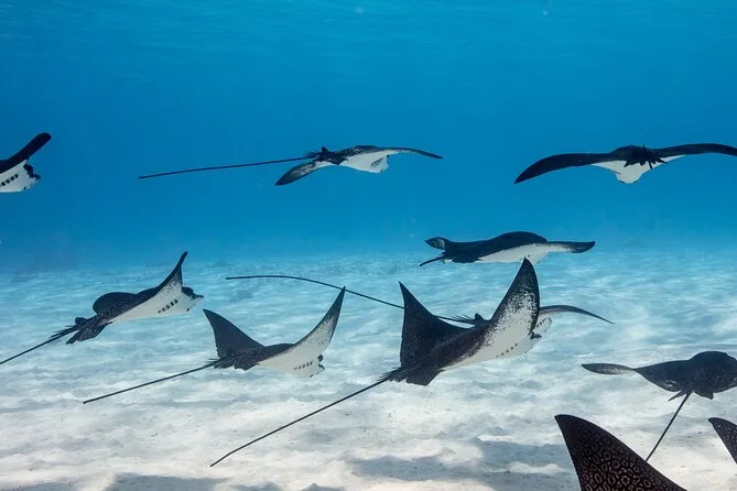 You may encounter manta rays, eagle rays, and a variety of colorful reef fish at several lagoon spots.