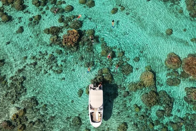 You’ll slip into Bora Bora’s lagoon with local guides who know every ripple and reef. Swim alongside manta rays at their feeding ground, drift over coral gardens alive with color, and spot eagle rays if you’re lucky. With all gear provided and pickup included, you can just focus on floating — and maybe laughing at yourself trying to pronounce “triggerfish” in French.