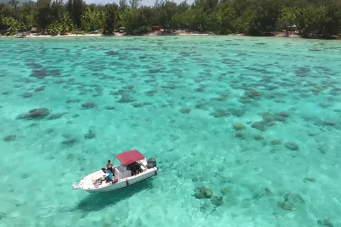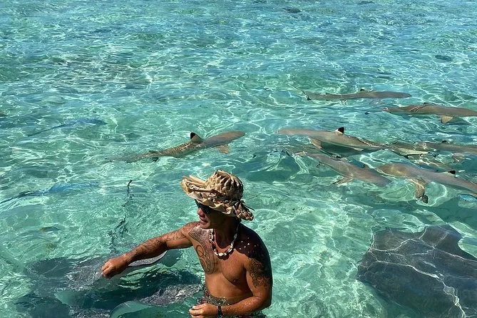 You’ll drift through Bora Bora’s lagoon by private boat with a Tahitian guide who knows every quiet corner. Swim above bright coral gardens, spot tropical fish together, linger wherever you want, and sip cold drinks onboard before heading back salty and happy.