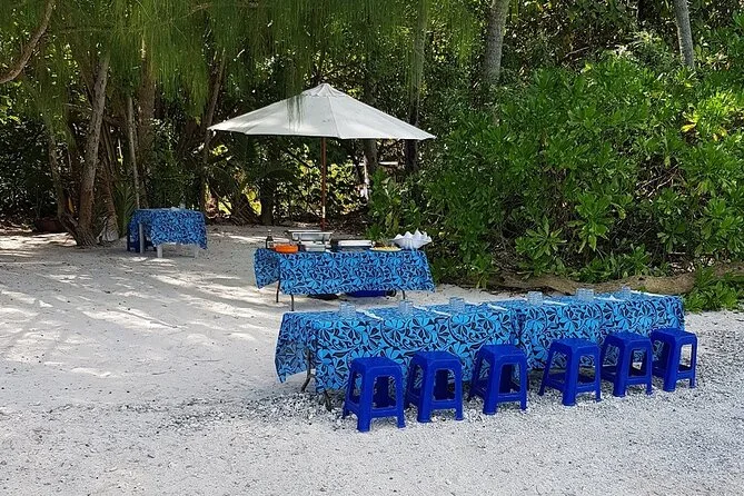 The exact duration isn’t specified but includes multiple stops for swimming and relaxing on an islet.