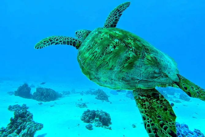 We drifted further out where the dolphins sometimes show up — didn’t spot any this time but the quiet out there is something else. Then back inside the reef for sea turtles. Floating above one while it nibbled at coral felt weirdly peaceful, like time slowed down for a second. By then the sun was high and everyone was hungry so we ended up on a tiny islet for drinks and some kind of coconut bread (still craving it). Honestly, I still think about that view from the boat — open sky, salt on your lips — you know?