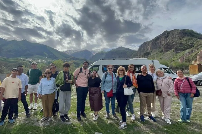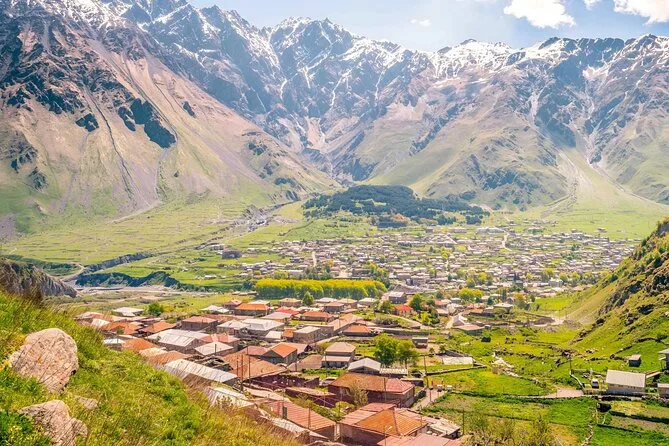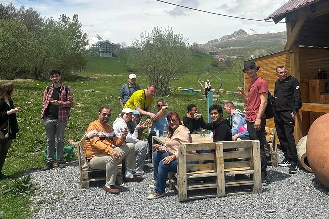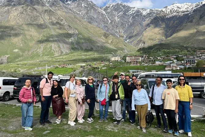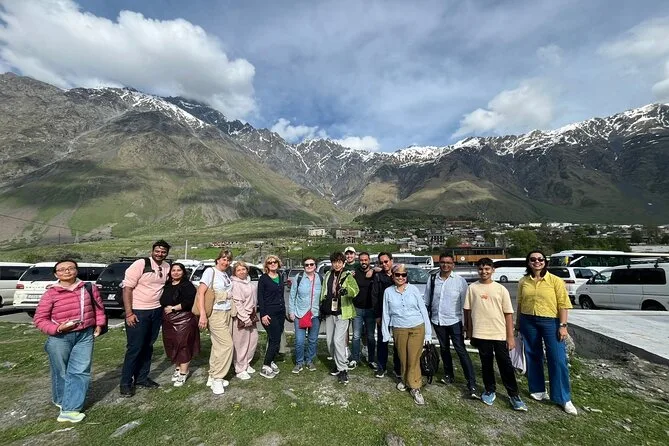 The tour is a full-day trip with multiple stops between Tbilisi and Kazbegi, including Gudauri and Ananuri.