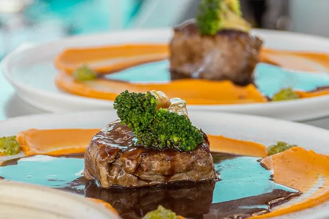 You’ll get a multi-course menu featuring Greek-inspired dishes like spinach pie tart, gravlax salmon tartare, beef fillet with smoked eggplant purée, and yogurt cream dessert.