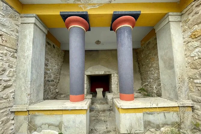 Lunch wasn’t included but we stopped anyway at a taverna overlooking patchwork fields — grilled lamb, mountain greens, tomatoes that actually tasted like tomatoes. Krasi village came next; that ancient plane tree is massive, its roots curling under cobbled stones older than anything back home. Locals sat playing cards nearby and didn’t seem to notice us much, which somehow made it better. By the time we reached Knossos Palace (skip-the-line tickets were easy with Giorgos’ help), my head was spinning with stories about Minotaurs and labyrinths. Exploring on our own after so much context just hit different — I still think about those faded frescoes and wonder what else they’ve seen.