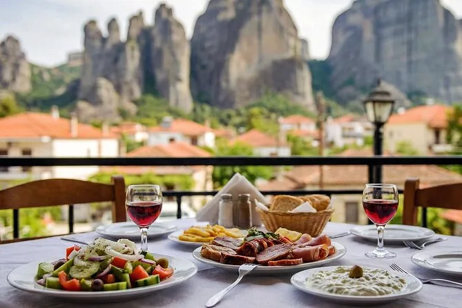 Your day includes roundtrip transfer by air-conditioned coach from Athens with free WiFi, entry into three major Meteora monasteries (with guidance on dress code), panoramic views of all six sites plus secret local spots like hermit caves, an expert area guide throughout your visit, audio guides in multiple languages if needed, plus an optional traditional Greek lunch featuring local dishes before heading back late evening.