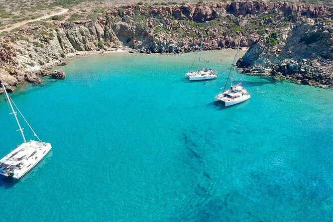 The cruise departs from Milos bay and ends at Agia Kiriaki beach.
