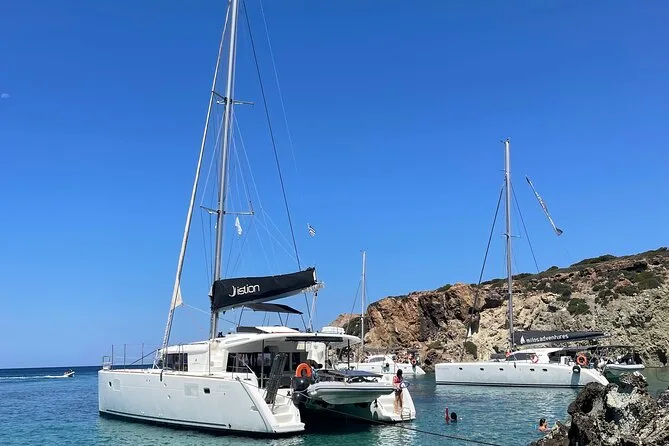 You’ll sail along Milos’ coast past colorful fishing villages and volcanic rock formations before diving into crystal-clear bays near Kalogries and exploring the famous pirate caves of Kleftiko Beach. Enjoy a fresh-cooked lunch on board with local flavors as you relax in the sun—this half-day cruise leaves you salty-haired and smiling.