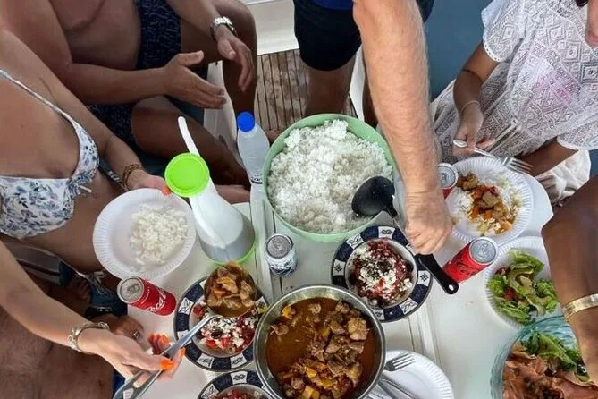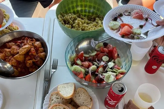 Your day includes sailing along Milos’ coast with stops for swimming and snorkeling at beaches like Firopotamos and Kleftiko; beer, wine, bottled water plus soft drinks; an afternoon snack of seasonal fruit; lunch cooked fresh onboard while anchored near Kleftiko; local snacks after your first swim; use of snorkeling gear; time to relax on deck before returning in the evening.