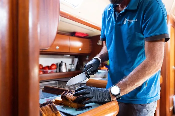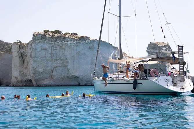 You’ll sail along Milos’ rugged coast with a small group, stopping to swim in clear coves and explore Kleftiko’s pirate caves with your local guide sharing stories. Lunch is cooked fresh onboard at anchor—expect grilled fish and plenty of wine—plus use of snorkeling gear and time to relax on deck as you drift between beaches.