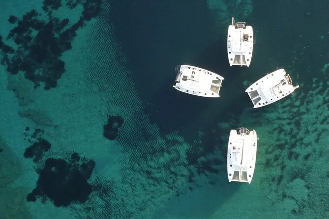 Catamaran day trip from Santorini with swimming, lunch and local wine