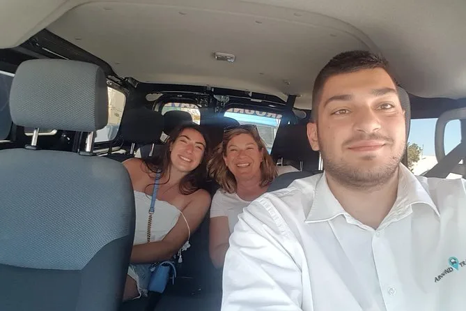 Your day includes private air-conditioned transportation with bottled water, a map of Santorini to keep track of where you’ve been (and maybe where you got lost), plus flexible pickup and drop-off from your hotel, port or airport—all led by a local expert driver who’ll help shape your day exactly how you want it.
