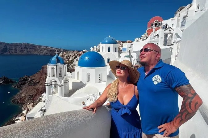 Your day includes private air-conditioned transport with bottled water throughout, pickup and drop-off from your hotel, cruise port or airport, plus a friendly local driver who helps shape your itinerary as you go—so you get both comfort and flexibility while exploring Santorini’s villages and volcanic beaches.