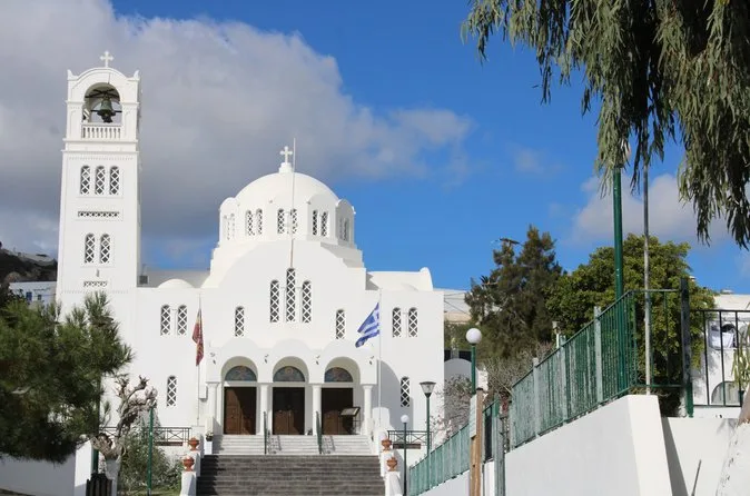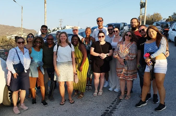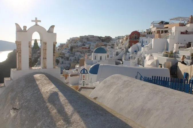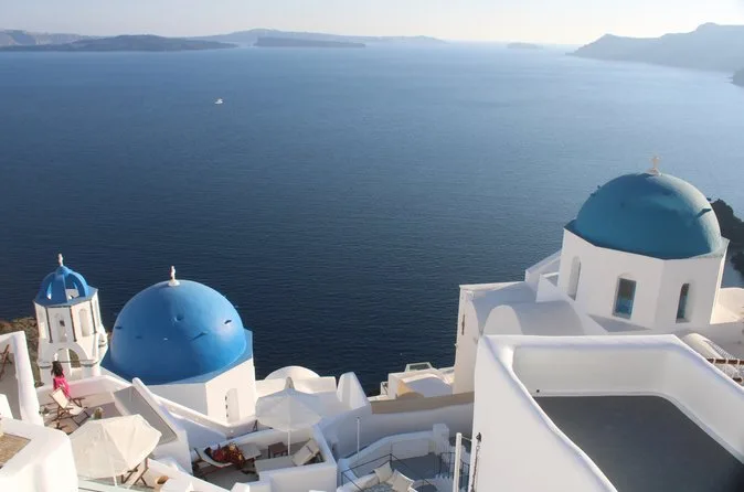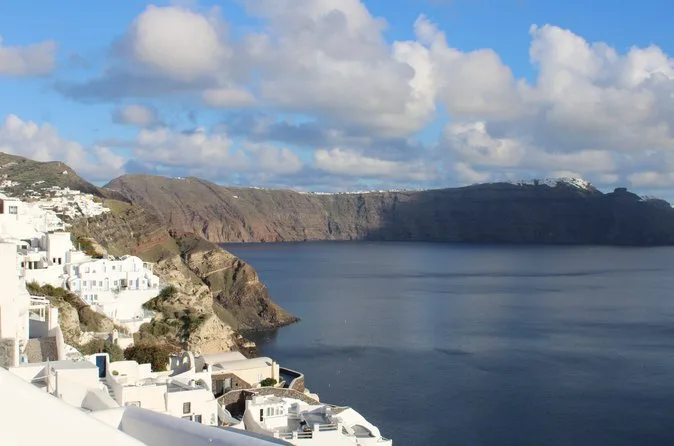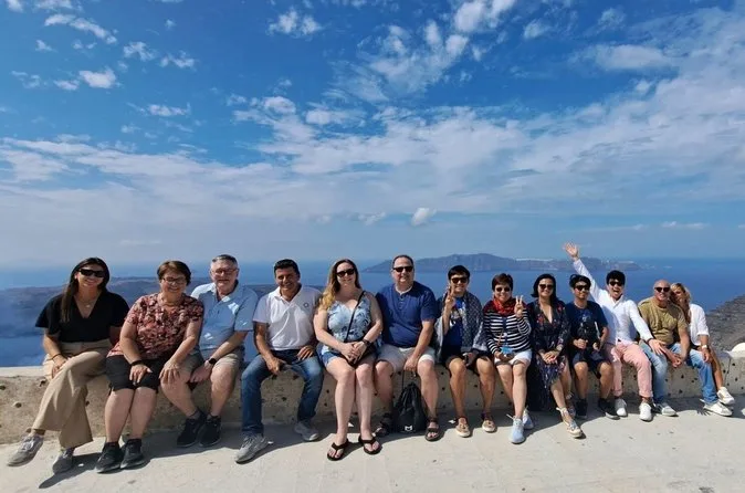 The tour lasts a full day with pickup in the morning and return after sunset in Oia.