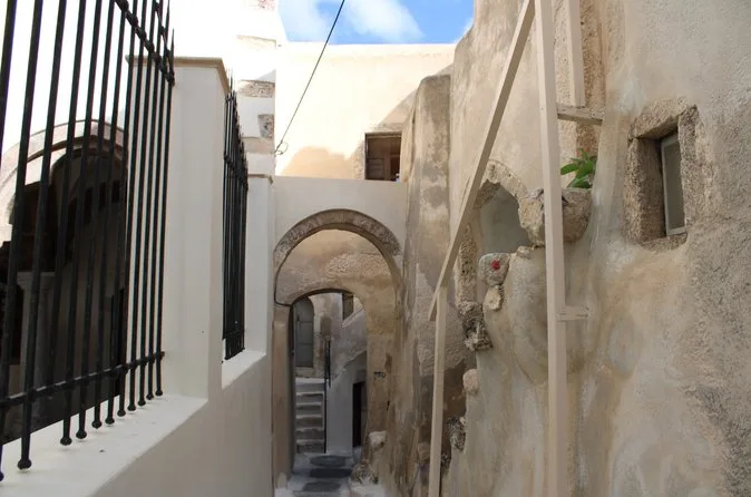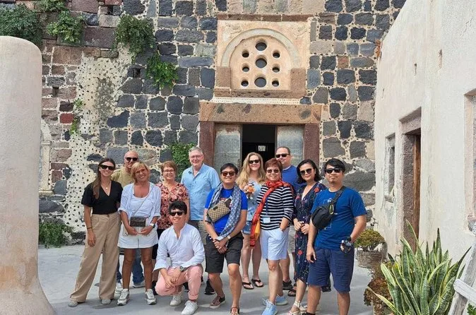 You’ll climb Pyrgos Castle for sweeping island views, wander Megalochori’s winding streets (with music if you’re lucky), swim at Perivolos black sand beach, sip wine in an old cellar near Emporio’s Venetian castle, then end up watching sunset from inside Oia’s ancient walls. It’s a full day of real moments — not just postcard shots.