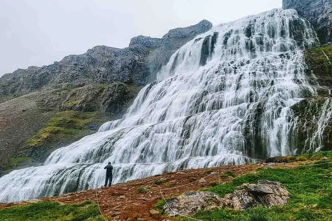 This is a half-day tour starting from Ísafjörður port, including about 40 minutes each way driving plus stops at Dynjandi waterfall and Gemlufell Farm.