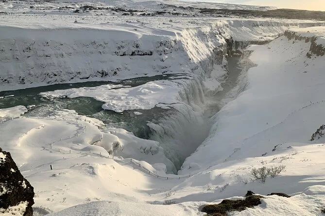 Your day includes private Super Jeep transport with a knowledgeable driver-guide from Reykjavik, hotel or port pickup and drop-off for convenience, plus all main sightseeing stops at Þingvellir, Geysir hot spring area, Gullfoss waterfall and Langjökull glacier before returning in the evening.