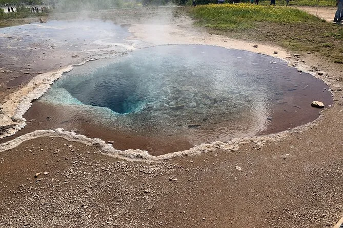 We bumped along past Laugarvatn — Jón said locals swim there even in winter because of the geothermal heat — and made it to Geysir. Strokkur’s eruptions were louder than I expected; I actually flinched the first time it shot up. The air smelled faintly of eggs (that sulphur thing), but after a while you just accept it as part of being here. Someone tried to pronounce “geysir” properly and Jón laughed so hard he nearly dropped his phone. After that we drove on to Gullfoss waterfall, which is honestly massive — I got sprayed just standing near the edge. The sound is sort of like thunder but steadier, more patient.