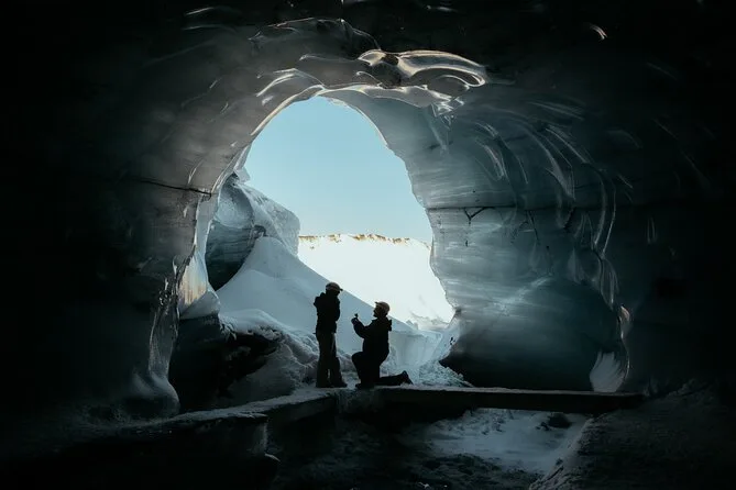 Your day includes use of crampons, helmet, and headlamp so you can safely walk on Vatnajokull glacier and explore inside an Icelandic ice cave alongside your local guide before heading back toward Jokulsarlon lagoon.