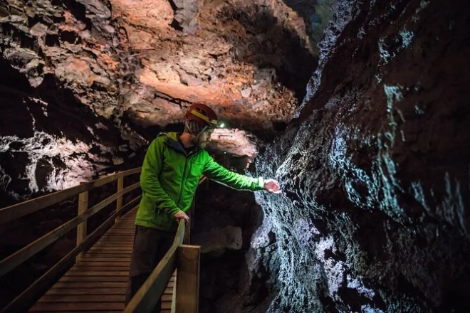 The Viðgelmir Lava Cave was colder than I expected inside — my hands went numb holding onto the railings sometimes. Colors on the walls shift as your eyes adjust: red-brown, blue-grey streaks where minerals have seeped through over centuries. Our helmets knocked together more than once in those narrow spots (nobody got hurt). Coming back up into daylight felt strange after so long underground; everything looked sharper somehow. I still think about that first breath of cold air outside.