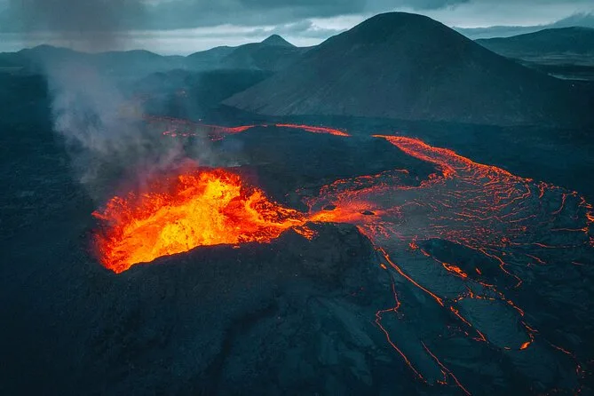 Your day includes pickup from Reykjavik meeting points, WiFi on board during transfers, guidance from an expert local throughout both volcano hike sections (about two hours each way), comfort admission ticket to the Blue Lagoon with towel use, silica mud mask, your first drink at the spa bar—and return transport back after soaking under open Icelandic skies.