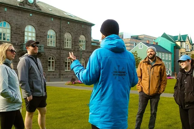 The tour begins at Ingólfur Square by the two stone pillars in downtown Reykjavik.