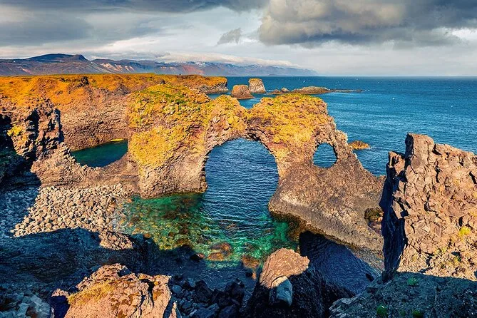You’ll ride out from Reykjavík into wild landscapes — golden-sand beaches with seals at Ytri Tunga, lonely Búðakirkja against glacier views, basalt cliffs at Arnarstapi, and finally Kirkjufell with its iconic waterfall. Expect real weather, stories from your guide, and moments where Iceland feels bigger than you expected.