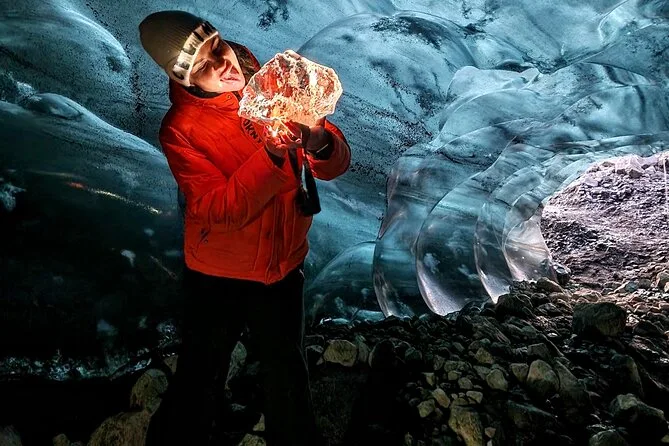 Your day includes pickup from Jökulsárlón Glacier Lagoon, all necessary safety equipment like helmets and crampons (plus headlights if needed), guidance throughout by a local expert who knows these glaciers well, and coverage of all taxes or fees—so you can just focus on walking into that unreal blue world without worrying about logistics.