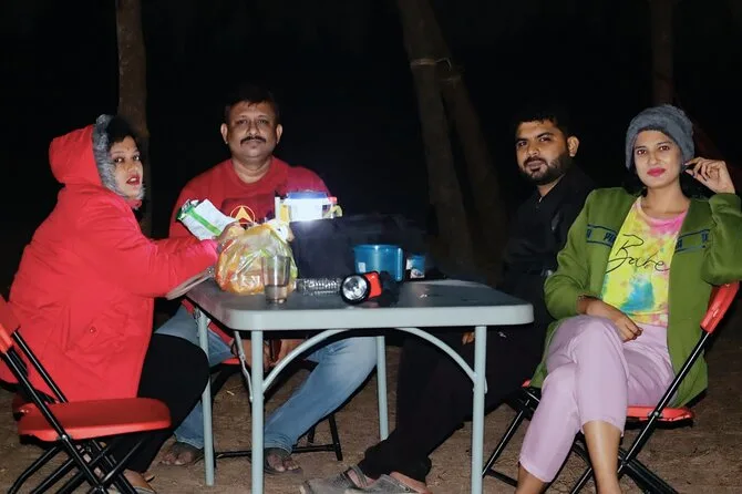 You’ll get tents and sleeping bags set up right on the sand, access to toilets (basic but clean), dinner (usually fresh fish curry), breakfast in the morning, plus games like volleyball and frisbee to keep things lively.