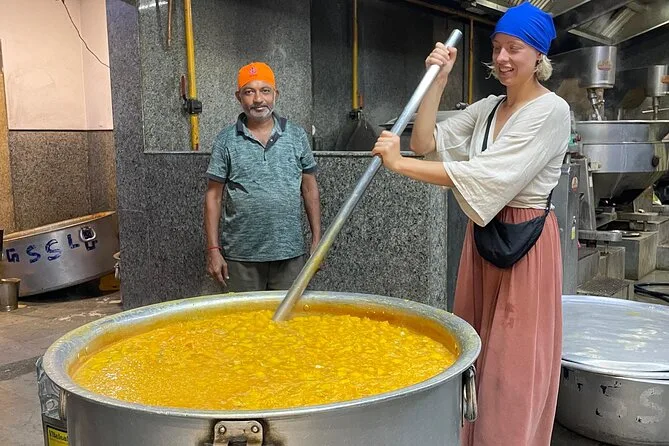 We ducked into the Sikh Gurdwara next. I’d read about the mega kitchen but seeing it — steel pots big enough to bathe in, volunteers rolling out dough by hand — was another thing entirely. Aman explained how over 15,000 people eat here every day for free. The sound of metal bowls clinking together echoed through the hall. He showed us how to cover our heads (I fumbled with my scarf), then we sat cross-legged for chai that tasted sweeter than any I’d had before. There was something grounding about it all — maybe just being invited in for a few minutes.